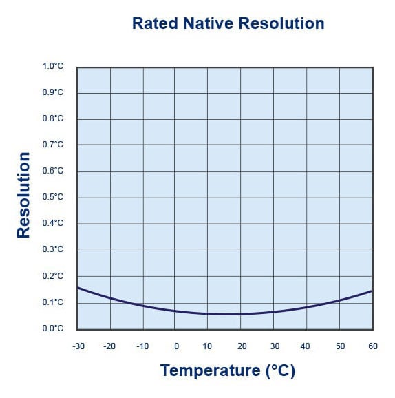 | Rated Temperature Reading Resolution | Less than 0.1°C/F. Please see the Rated Native Resolution chart below. LogTag Analyzer® currently displays to one decimal place of °C or °F. The native resolution is what is stored in the LogTag®. |